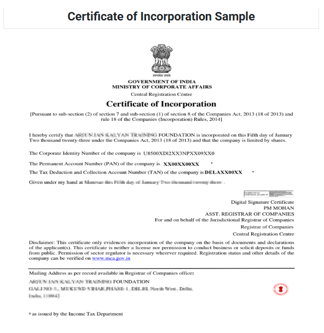 As per the Companies Act 2013, you need to provide proper identity and address proof to be submitted on the Ministry of Corporate Affairs (MCA) portal for Section 8 company registration.