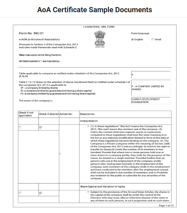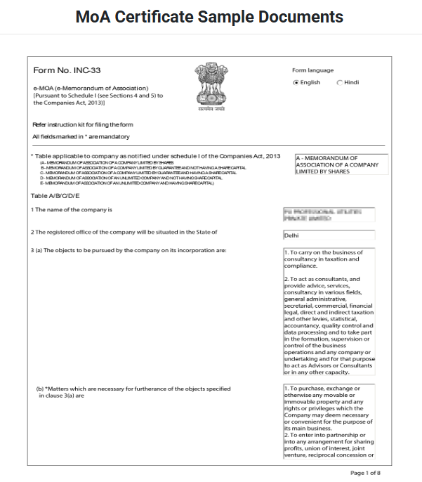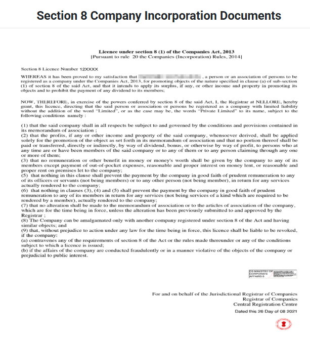 After successful registration of a Section 8 Company, you will be provided with the following documents: